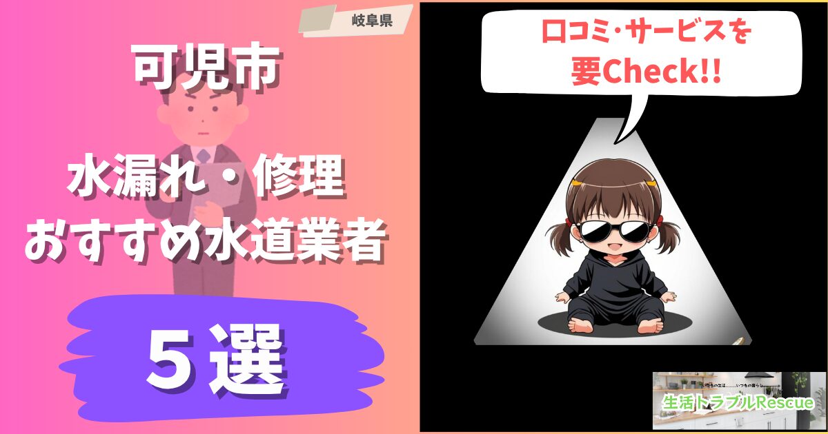 岐阜県可児市の水トラブル時におけるおすすめの水道修理業者は下記の業者5選です。