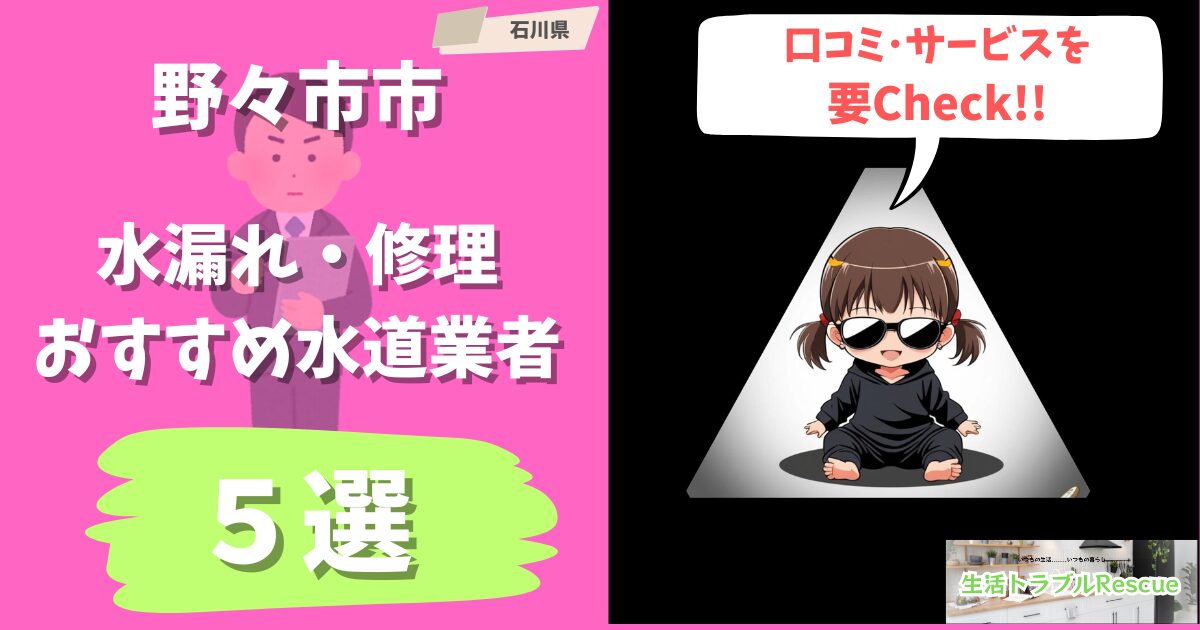 石川県野々市市の水トラブル時におけるおすすめの水道修理業者は下記の業者5選です。
