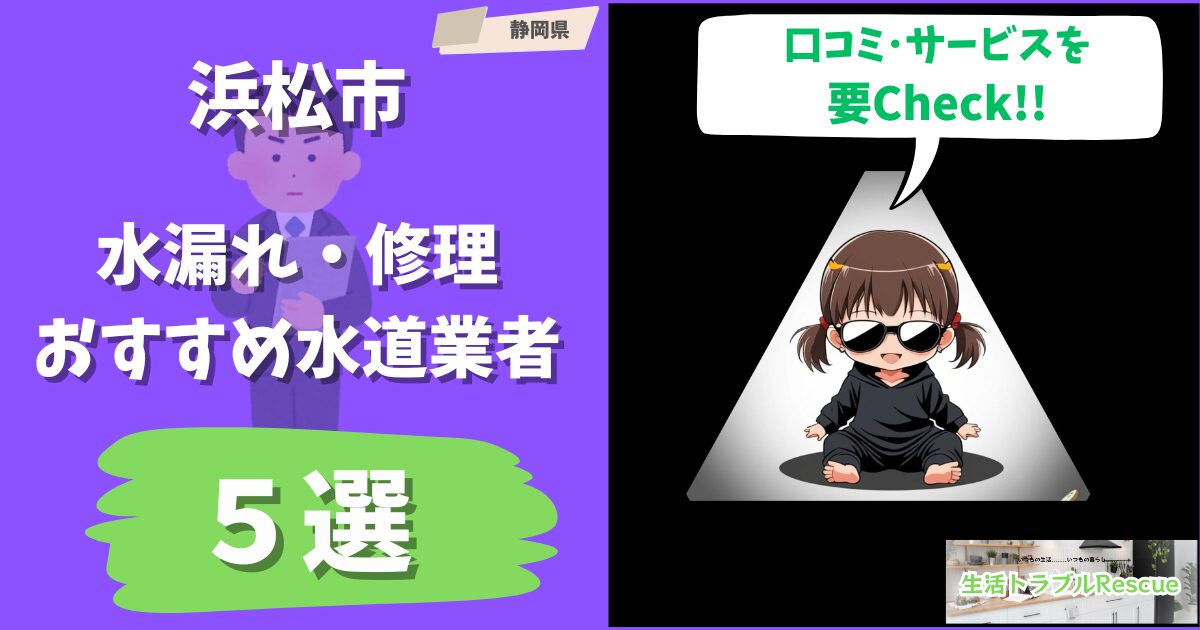 静岡県浜松市の水トラブル時におけるおすすめの水道業者は下記の業者5選です。