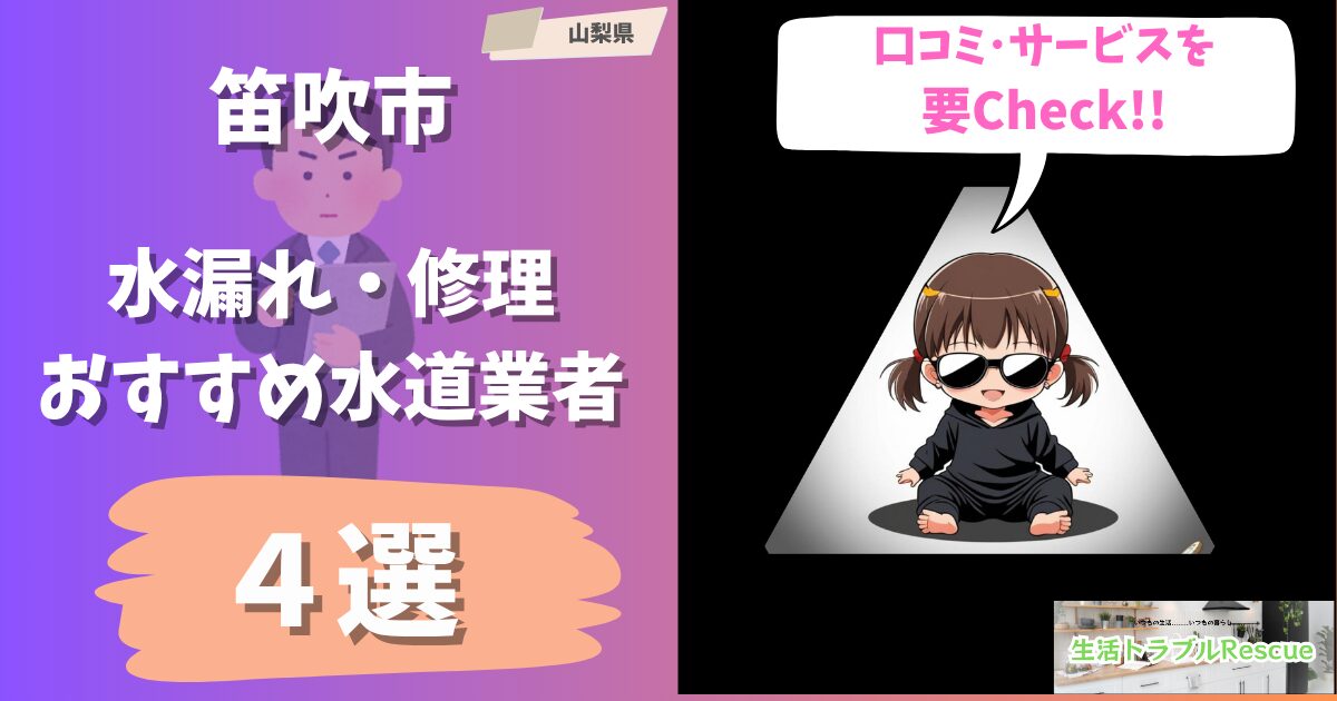 山梨県笛吹市の水トラブル時におけるおすすめの水道業者は下記の業者4選です。