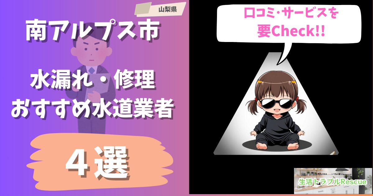 山梨県南アルプス市の水トラブル時におけるおすすめの水道業者は下記の業者4選です。